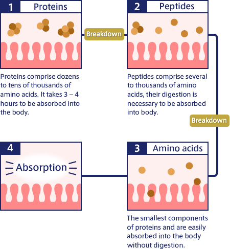 You can think of proteins as buildings; they’re made up of thousands of amino acid building blocks. Our digestive systems take these building blocks apart to build other useful substances.